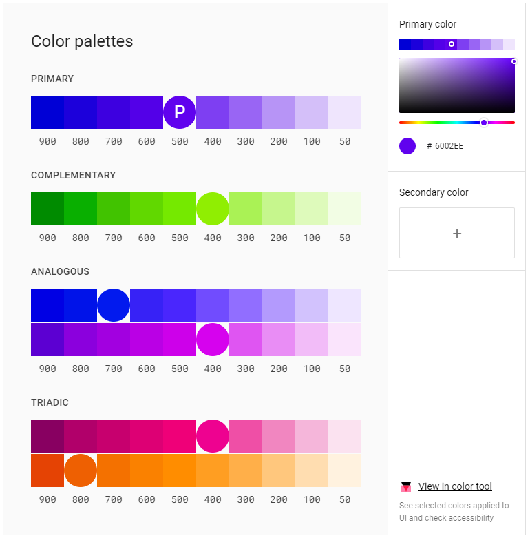 Alongside Google’s flat design is the ‘Color Tool’ which provides a working selection of colours, including complementary colours, analogous and triadic options, based on your primary choice. Simply choose an initial colour using hex codes or the colour picker and Google will do the rest.