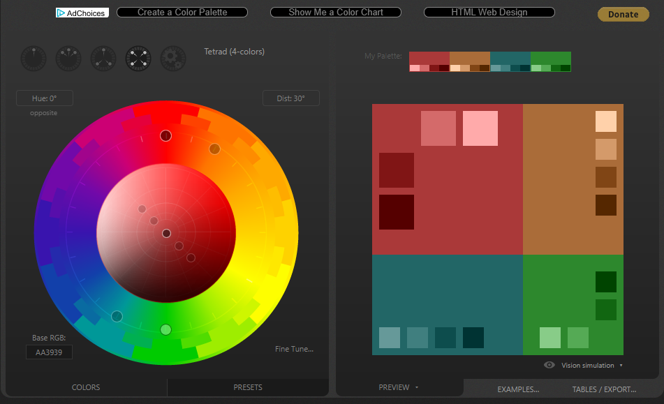 There are loads of website colour palette generators out there, which will provide a whole range of colour schemes, based on specific rules, including Adjacent, Triad and Tetrad colour schemes, but we find Paletton to be the best.
