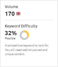 The keyword ‘SEO’ has 33K monthly searches, with a keyword difficulty (how hard it would be to rank highly) of 100% meaning it’s virtually impossible to capitalise on. Dialling it in a little and including the suffix ‘agency’ (to create the term ‘SEO agency’) reduces the monthly traffic to 6.6K, but the difficulty has halved to 51%. Now we’re getting somewhere! Adding a location, such as ‘Sheffield’ (to give ‘SEO Agency Sheffield‘) reduces the monthly search volume even further (to just 170 searches per month) but also drops the ranking difficulty to just 32%, something much more achievable and, given the term, probably with a higher conversion rate.