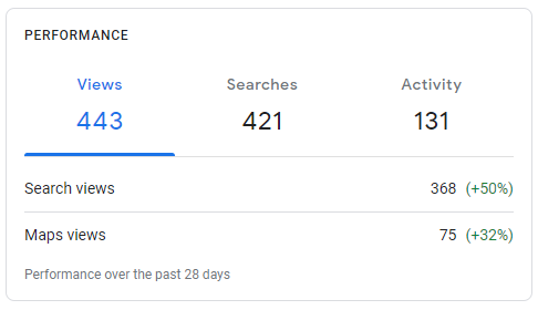- Direct: The number of people who found your listing by searching your business name or address. This can be useful if you’re aiming to build brand awareness.