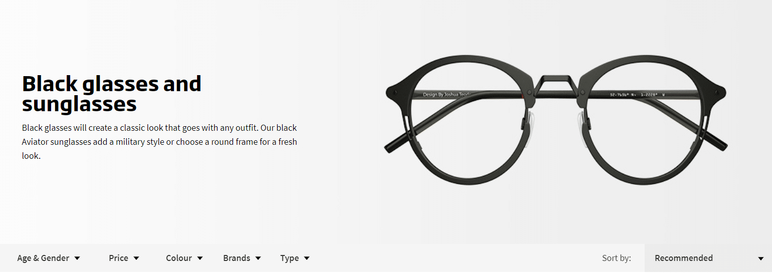 Think about it, if you’re looking for Black Framed Glasses, you’re more than likely going to end up on a High Street Opticians site, specifically on black framed glasses. Another example of Google doing what it does best. (Just FYI, we’ve done the search, the top result, at the time of writing is Specsavers: Black Glasses and Sunglasses).