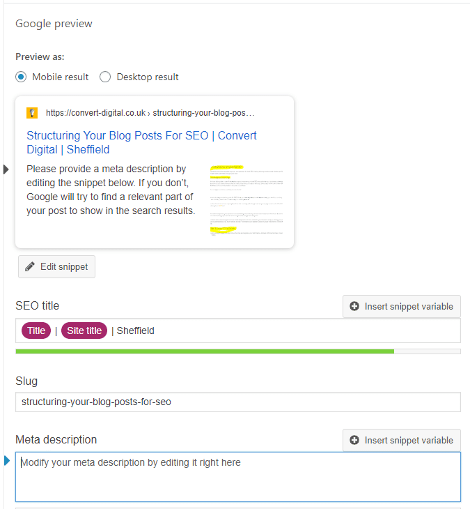 How you update your meta tags will differ, depending on how your site back end is structured, but if you’re using WordPress we can’t recommend Yoast enough! It makes updating tags a point and click exercise.